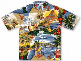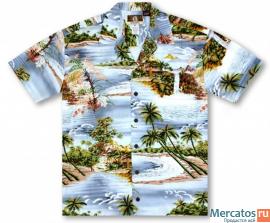 Оригинальная Гавайская шёлковая рубашка. Дизайнер Iolani Ku'uipo. Made in Maui island, Hawaii, USA, р.46-74