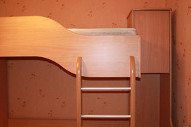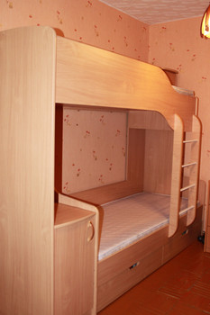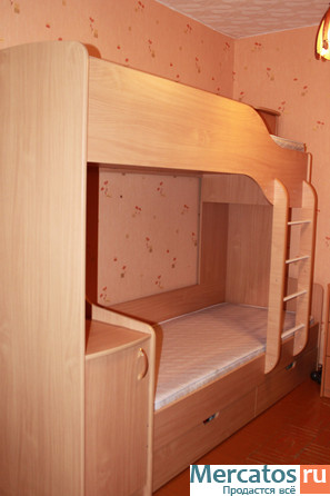 Кровать с матрацами. Имеются шкафчики, полочки. Спальное место 80*200 см. Матрацы гипоаллергенные двухсторонние: с одной стороны латекс, с другой-кокосовое волокно.