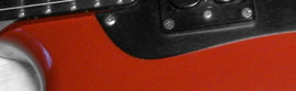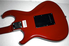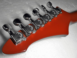 Дека Тип «fat strat». Дерево – ольха. Цвет красный, фальшпанель – чёрная.