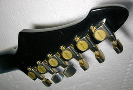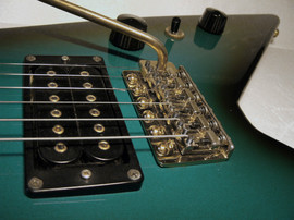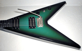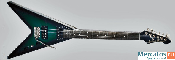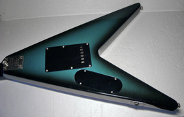 Дека - Тип «Flying V», ольха (?), цвет сине-зелёный с чёрной каймой.