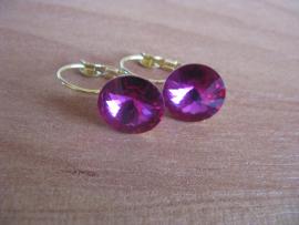 Серьги с ювелирными стразами Сваровски цвет Фуксия 12мм