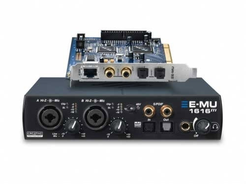 E-Mu 1616M – это профессиональный аудиоинтерфейс с внутренним DSP микшером и процессором эффектов. Аппаратный DSP-микшер и процессор эффектов позволяет разгрузить процессор вашего компьютера. Интерфейс имеет на борту 8 аналоговых входов и 8 аналоговых выходов. Подключив к E-Mu 1616M внешний ЦАП/АЦП через встроенные ADAT или SPDIF, можно получить до 16 аналоговых входов/выходов. В интерфейсе используются высококачественные конверторы Digidesign, как и в ProTools Digidesign HD, которые обеспечивают разрешение 24 Бит / 192 кГц, и динамический диапазон 120 дБ. MIDI вход/выход позволяет синхронизировать внешние MIDI устройства с вашим секвенсором. Фирменные предусилители обеспечивают чрезвычайно низкий уровень шума – 127 дБ. Два аналоговых входа могут переключаться в линейный, микрофонный и инструментальный режим. Имеется фантомное питание – 48 в., для подключения конденсаторных микрофонов. В комплекте с интерфейсом есть все необходимое программное обеспечение, для управления внутренним DSP процессором и маршрутизации виртуальных и аппаратных сигналов, а так же драйвера для Macintosh и Windows. E-Mu 1616M совмести со всеми известными секвенсорами и аудио-редакторами. Дополнением ко всему есть высокоомный вход с предусилителем – фонокорректором, который позволяет подключать виниловый проигрыватель.