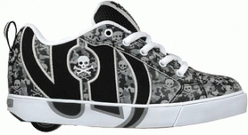 Хилисы - кроссовки со вставляющимся в пятку колесиком,серого цвета, рисунок - черепа, размер 43. В хорошем состоянии. При снятии колес хилисы превращаются в обычную обувь