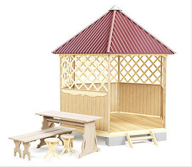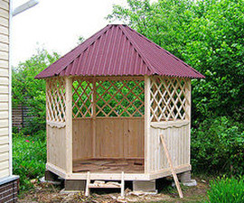 6-гранная деревянная беседка с полом. Беседка изготавливается из сосны. Пол застелен доской 40 мм с антисептик пропиткой. Верхняя часть беседки - сетка. Возможны разные варианты и доработки по Вашему желанию.