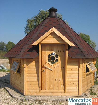 Производим и продаем строительные комплекты для монтажа гриль-домиков Чародей на вашем участке под ключ. Гриль-домики созданы по финской технологии, могут выполнять роль беседки или садового домика на даче, для оформления приусадебного участка, в лесу, на берегу реки или озера, как убежище для туристов, любителей охоты и рыбалки. Гриль-домики выглядят красиво, теплые, комфортабельные, подходят для всесезонной эксплуатации. Брусовой утепленный домик, внутри которого по центру находится грильная установка, широкая столешница, а возле стен стоят вместительные лавки лежаки, прекрасно подходит для коллективных посиделок, приготовления различных блюд на гриле, чаепитий или обедов за общим столом. Гриль-домик Чародей имеет модульную конструкцию, площадь домика 9 кв. м., 6 граней, вместимость до 8-10 человек. Монтаж гриль-домика Чародей на вашем участке осуществляется в короткие сроки, в комплект поставки входит: стены - блок-хаус, крыша - мягкая черепица, пол - шпунтованная доска, скамьи, грильная установка.