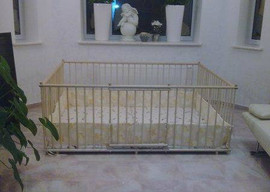 По желанию заказчика в одной из стенок обустраивается дверка для малыша, колёсики в опорах, защитные бортики по стенкам манежа.