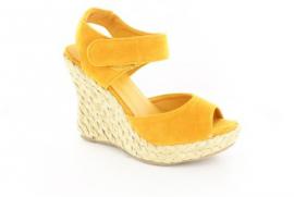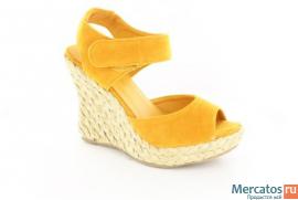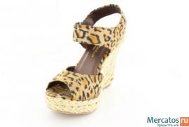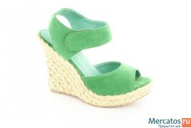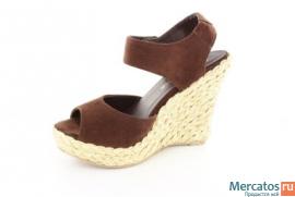 Босоножки из искусственной кожи разных цветов и платформе 11 см из рафии. Застежка на липучке. Размеры с 32 по 35 и с 42 по 45.
