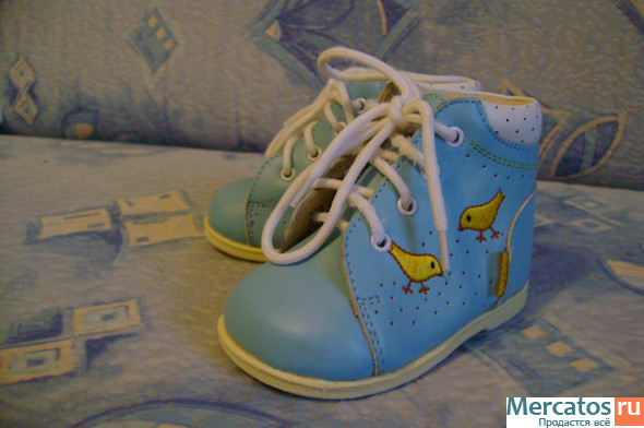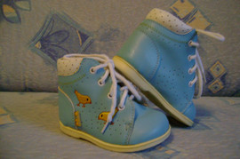 Ботинки ясельные р - 17,5 ,голубые, на шнурках, украшены вышивкой (цыплята), новые