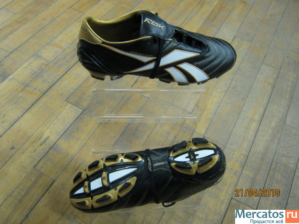 Новые бутсы Reebok. Хорошее качество, куплены в Англии. Черно-золотистые. Как раз для игры как на грунте так и на траве, газоне. Размер 41 российский, есть 42