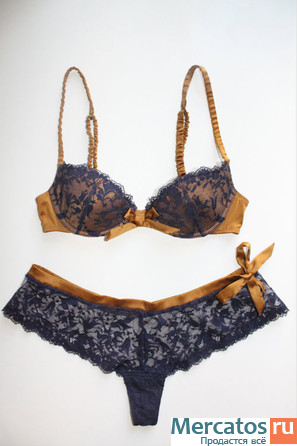 Комплект белья из двух единиц: бюстгальтер и стринги-шорты практически в новом состоянии. Бюстгальтер размером 70 A, стринги-шорты 42 российского размера. Комплект выполнен из цветочного кружева цвета индиго. Бюстгальтер, плотная чашка на кости. Покупала за 5000, продаю только комплектом из двух единиц.