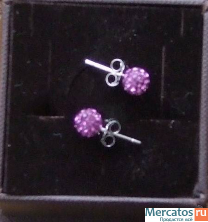 Серебро 925 пробы, дл. 38 см, 2,5 см на удлинение, кристаллы Сваровски ежевичного цвета; серьги -пусеты, форма шарик, усыпанный кристаллами Сваровски.Производство Италия.