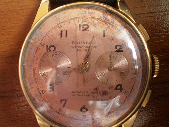 Швейцарские наручные часы-хронограф EARNST. В золотом корпусе 750 пробы. Механизм OMEGA.