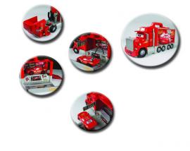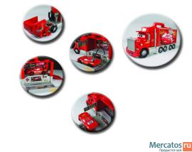 В набор входит: Трейлер с 11 различными звуковыми и световыми эффектами, размером 45 сантиметров, сборно-разборная машина "Молния Маккуин 17 см, отвертка, плоскогубцы, разводной ключ.