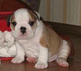 Продаются щенки английского бульдога шоу класса, 2 девочки и один мальчик, окрас рыже-белый, родились 1 августа, родословная, все документы, т. 8-906-506-0485, Калуга