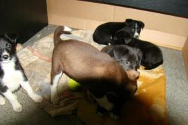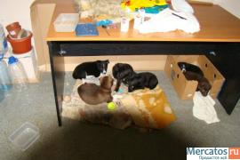 Окрасы: коричневый с белыми пятнашками, коричневый, черный, черный с белым. Похожи на лабрадора.