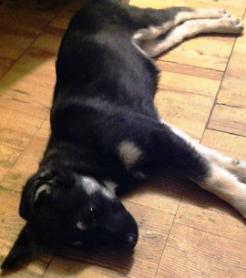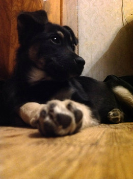 Девочке около четырех месяцев, некрупная. Зовут Элли. Она совсем еще ребенок, но уже достаточно умна чтобы понимать чего от нее хотят, что можно, а что нельзя. Она принципиально не ходит в туалет дома, а поднимает нас на ноги, теребит, чтобы ее вывели на прогулку. Лишенная породы, она ведет себя чинно, воспитано и благоразумно, подобно особе истинно королевских кровей.