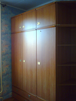 К нему сбоку примыкает шкаф библиотечный угловой- для книг и игрушек. Б/у. Состояние отличное.