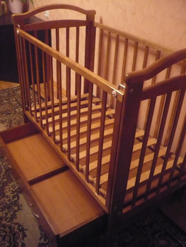 -Передняя стенка с двойным фиксатором,опускается или снимается когда ребёнок подрастает;