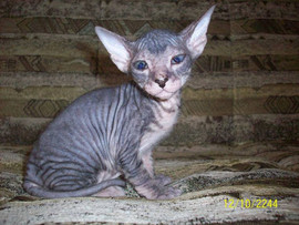 Котята донского сфинкса. Голые, очаровательные, складчатые. 17.06.2011 г.р. Окрасы: красный (кремовый - мальчик), голубой (серый - мальчик) и черный тэбби (серый в полосочку - девочка).