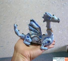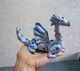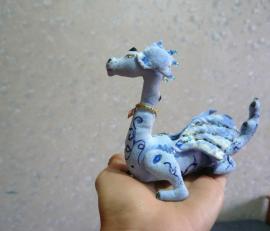 Вот, такой дракончик родился, он совсем еще маленький (всего 15 см). Окрашен акриловыми красками.