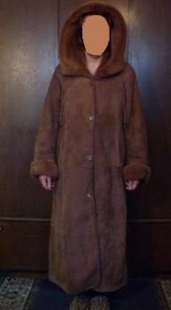 Дубленка женская, удлиненная с капюшоном р-р48-50 на рост до180см.