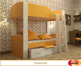 Двухъярусная кровать Астра 2, без матраса. Выполнена в цвете корпуса ; дуб молочный с цветными вставками: синий, оранжевый, зеленый (текстиль), венге, дуб -молочный. Материал ламинированное ДСП. Толщина ЛДСП 16 мм., толщина ЛДСП дна кровати первого и второго яруса 22 мм. Диаметр лестничных перекладин 25 мм. Собирается ТОЛЬКО на правую сторону (как на фото). Выдвижной нижний ящик на роликах. Размер спального места 80х190 см. Мебель комплектуется за отдельную оплату матрасами «ППУ» (пенополиуретан)- 3000 руб. Доставка по Москве 700 руб. Сборка 1200 руб. Подъем 200 руб. лифт. Оплата за товар при доставке . Доставка товара осуществляется по всей России через транспортную компанию (на Ваше усмотрение ).