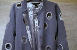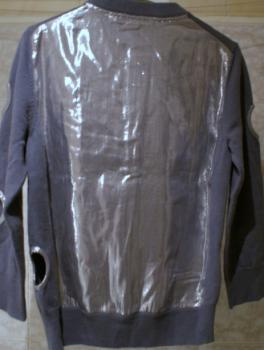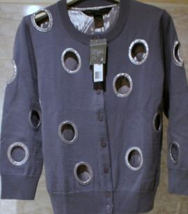 Джемпер Marc by Marc Jacobs на пуговицах, серо-голубого цвета. Спинка и отделка сделаны из металлизированной ткани.