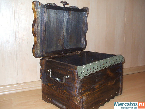 "Сундучок счастья" из массива сосны с эффектом старения, цвет темный орех, ручная работа