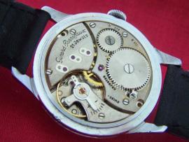 * Механизм - механика; высококлассный, улучшеный калибр Girard-Perregaux 03, противоударная защита (Incabloc), настроен в основных положениях, камни ангренажа на винтах, всего 21 камень; функции - часавая, минутная и маленькая секундная стрелки, диаметр механизма 29 мм, частота колебаний боланса f = 18000 A/h, запас хода 41 час, замечательное состояние, прошел предпродажное обслуживание, сохраняет плавный, точный и надежный ход; Подписан GIRARD-PERREGAUX, 21 JEWELS, ADJUSTED, 03 B 613, SWISS, оригинальные клейма.