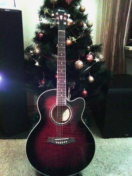 Гитара электроакустическая, цвет Transparent Black Cherry Sunburst, корпус клен, верхняя дека волнистый сикамор, гриф махагон, накладка палисандр, 20 ладов, бридж палисандр, пьезозвукосниматель Ibanez/B-Band Squeal Repeal,предусилитель Ibanez SRT, выходы 1/4` и XLR