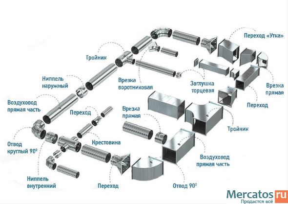 • - воздуховоды из оцинкованной стали прямоугольного и круглого сечения;