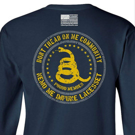 Надпись на футболке : Dont Tread on Me Community переводится « Сообщество - Не наступи на меня»