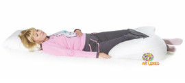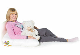 Г-образная подушка для беременных и кормящих "Гармония" нравится многим, однако чаще ее выбирают те, у кого размер кровати не позволяет широко раскинуться вместе с подушкой. Такая форма подушки экономит место. При этом даже более, чем на 100% она выполняет свои функции. Дело в том, что её можно использовать без дополнительной подушки для головы! Короткая часть подушки превосходно заменяет подушку для головы.