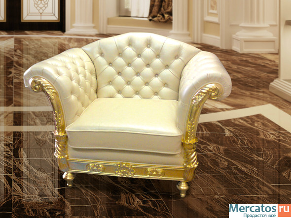 Гарнитур VERA, выполнен из массива ценных пород дерева, натуральная кожа производства Италия. В комплекте Диван и 2 кресла.