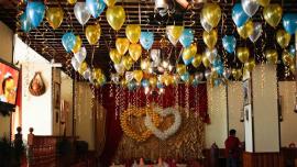 ШАР СЮРПРИЗ: Метровый шар, внутри много маленьких шаров. Подвешивается у потолка, в торжественный момент лопается и маленькие шары рассыпаются по полу.