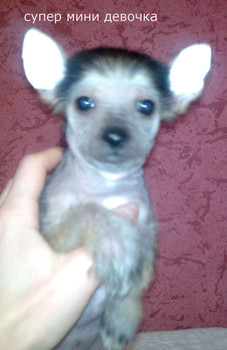 Продаются, для истинных ценителей красоты настоящий эксклюзив, замечательные супер мини щенки китайской хохлатой собачки оленевидного типа. От здоровых и породистых родителей. Отец супер мини красавец(вес отца 1.8кг, рост в холке 23), мама супер мини красавица (вес 2 кг, рост в холке 22 см). Щенки-супер мини в 6-м поколении уникально крошечного размера, будут меньше и легче кошки, легко приучаются к лотку. Для продажи готовятся голый мальчик и голая девочка. Все щенки с черными хохолками, с шикарной гривой и красиво одетыми лапками. Вязка плановая, щенки с документами. Будут пригодны как для шоу и разведения, так и просто для души! На фото мама щенков. Щенки заростом будут похожи на папу, так как у папы взяли шикарную гриву, а у мамы совершенно голое тело. Торопитесь купить малышей , остались на продажу два щенка. C каждым днем щенки будут все красивее, ушки уже стоят.