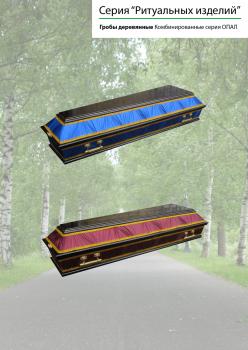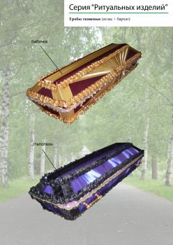 Наша компания производит несколько видов гробов под заказ: гробы лакированные(массив сосны), гробы комбинированные(МДФ с тканевой обивкой), гробы тканевые (обивка атлас или бархат).Дополнительно укомплектовываются ручками и крестами с распятием. В дизайн гроба могут быть внесены различные изменения по желанию заказчика.