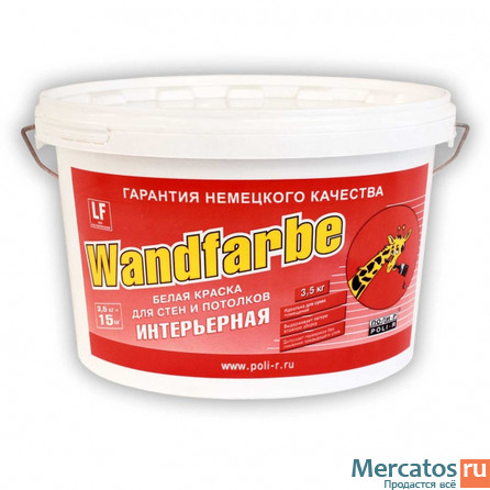 КРАСКА БЕЛАЯ МАТОВАЯ УНИВЕРСАЛЬНАЯ Wandfarbe без запаха  1,500 RUB