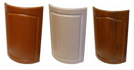 изготовим гнутые фасады из мдф, следующих радиусов: 250мм, 300мм, 350мм, 400мм, 600мм, 1000мм. При высоте максимум 1800мм. Обработка торца по периметру R2, R5, R8 мм, кант. Изготавливаем гнутые витрины под стекло. Стоимость фасада рассчитывается в метрах квадратных, зависит от пленки на внешней стороне фасада. Под пленкой изготавливаем и прямые фасады. Подробный прайс вышлем на электронную почту.