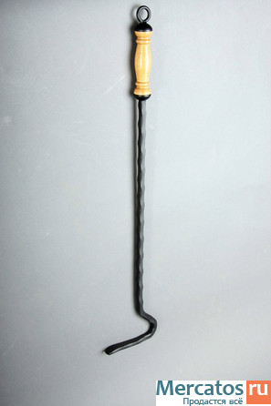 Кованая кочерга - ручка светлый дуб, фигурная. Длина предмета - 65 см.
