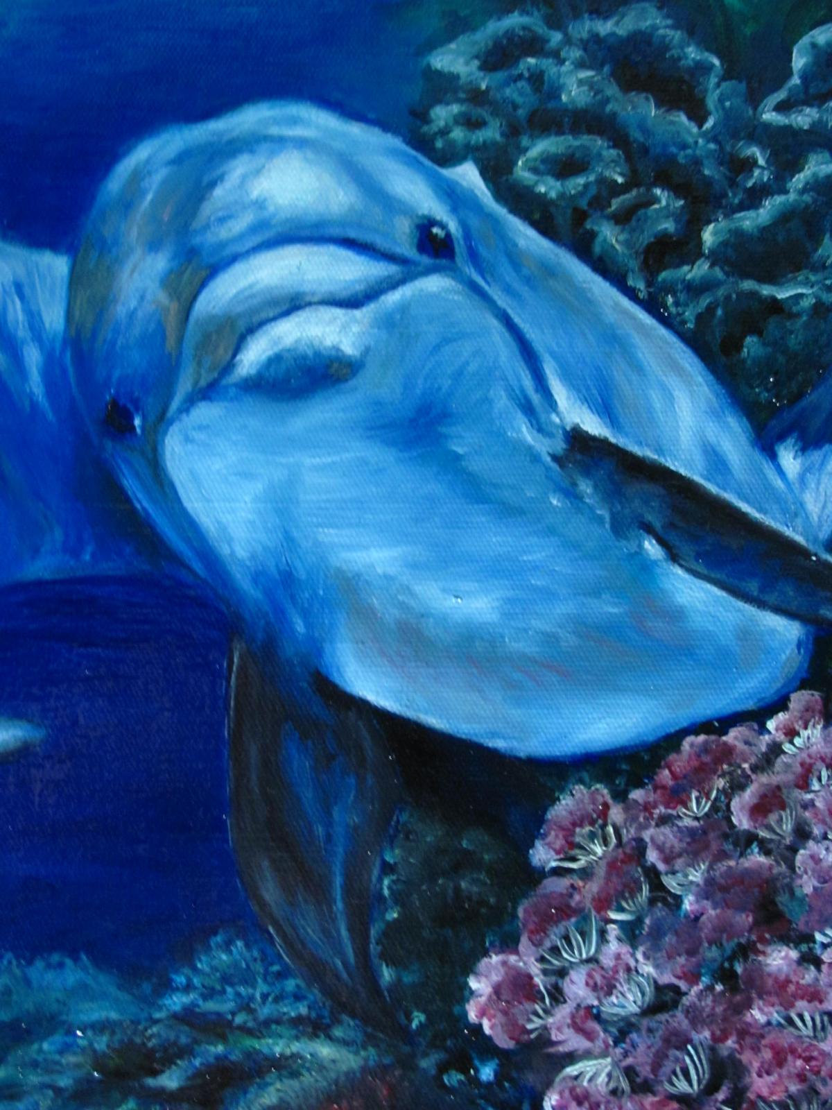 картина маслом на холсте, размер 50*70 авторская работа 2010г,без рамы.Очень симпатичные дельфинчики:)Они будут прекрасным украшением дома!