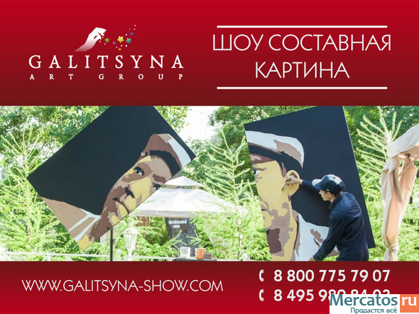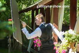 Танцующий художник – это уникальный проект, являющийся своеобразным сплавом живописи и хореографии. Исполняя экспрессивный, динамичный, яркий танец, на ваших глазах художник рисует свою картину. Пройдет совсем немного времени, и перед вами возникнут несколько полотен, которые объединившись образуют полноценную картину. Приятным, оригинальным сюрпризом на вашем празднике может стать портрет юбиляра, главы компании на фоне ее логотипа, первый портрет молодоженов. Galitsyna Art Group – воплощает все выше перечисленное в жизнь.