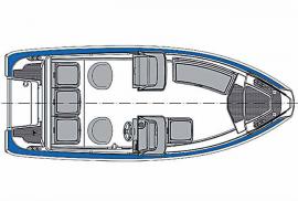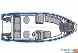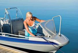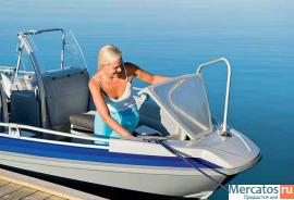 В носовой части лодки имеется просторный багажный отсек. Дверь между консолями, опция Canvas, защищает путешественников от ветра во время движения. Удовольствие вождения обеспечивают низкий порог скольжения и безопасная, стабильная управляемость. Тент легко и удобно складывается в практичный специальный ящик для хранения, который можно использовать и как отсек для хранения другого оснащения и багажа. Практичность тента заключается в том, что его боковые части полностью съемные, задняя часть легко сворачивается в рулон. Основное оборудование - стационарный топливный бак, вместимостью 72 л. Удобные, регулируемые, вращающиеся сидения облегчают передвижение по лодке. Новая конструкция креплений леерного ограждения облегчает использование кранцев.