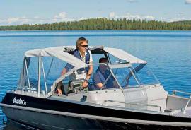 Улучшенная эргономичная конструкция консолей обеспечивает водителю высокий уровень комфорта. Лодка демонстрирует образец исполнительности и безукоризненно подчиняется в управлении. Тент на корму, открывающийся спереди, удобен при подходе к берегу или причалу. Отдельное внимание заслуживают практичные, удобно открывающиеся и закрывающиеся отсеки для хранения оборудования и грузов. Внутри консоли имеется большой отсек и разъем на 12. Эргономичные консоли имеют отсеки для хранения мелких вещей и обеспечивают удобное размещение эхолота и навигационных приборов, а также комфорт капитану и пассажирам. Заднее сидение на корме, при желании, легко снимается для получения свободного пространства для рыбалки или перевозки грузов. Раздвижная дверь-занавеска между консолями обеспечивает дополнительную защиту кокпита от ветра. Прочные поручни, рифленые поверхности в носовой части и ступень на боковом сидении обеспечивают удобное и безопасное передвижение по лодке. Благодаря продуманному решению внутреннего пространства, на лодках Buster XL достаточно места для приятного отдыха компании из 7 человек.