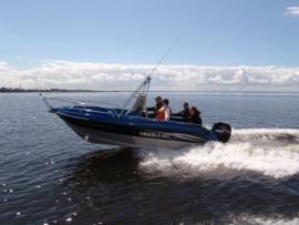 Высокий борт, хорошая маневренность и управляемость, а со 140м двигателем еще и высокая скорость, позволяют ловить даже при высоких волнах, когда друзья остаются у причала. Все это делает GRIZZLY 580 Fisherman истинно рыболовным катером. Ловить с места, гоняться за окунями или щукой, троллинговать, все это легко и просто.