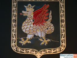 выполнен в ручную шитьем золотом.