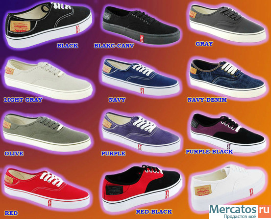 Кеды Levis Rylee: charcoal, purple, black, navy, denim, olive, red, white, light blue, orange, black/red, р. 40-45