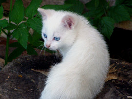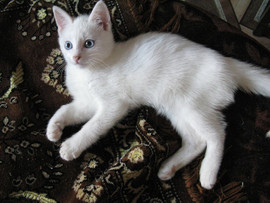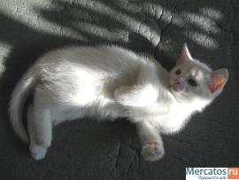 Киса белая, девочка, голубоглазая гладкошёрстная, к лотку приучена