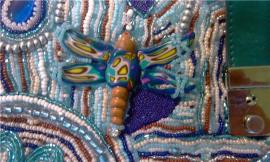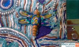 Бисер, кабошоны (кошачий глаз), стеклянные бусины, полимерная глина, микробисер.