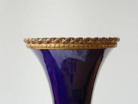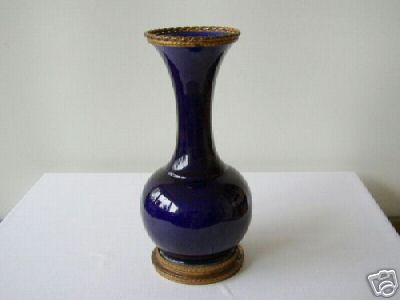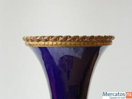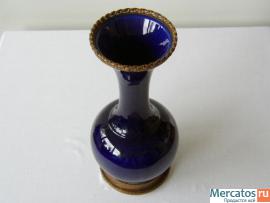 Элегантная фарфоровая, кобальтовая ваза. Начала 20-ого века. Мануфактура - Севр. Основание и горлышко окаймляют бронзовые ободки тончайшей выделки. Высота – 27 см. на основании имеется серийный номер (в тесте). Состояние идеальное.